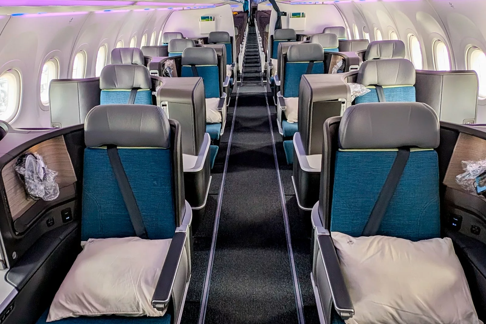 In business class, the seating configuration alternates between paired seats (2-2) and solo “throne” seats (1-1). Passengers can select their preferred seat at no additional cost. The throne seats, located in rows 3 and 5, provide direct aisle access and enhanced privacy, making them ideal for solo travelers. However, those traveling with a companion may prefer the paired seats in rows 2, 4, or 6, though they come with limited storage and privacy.