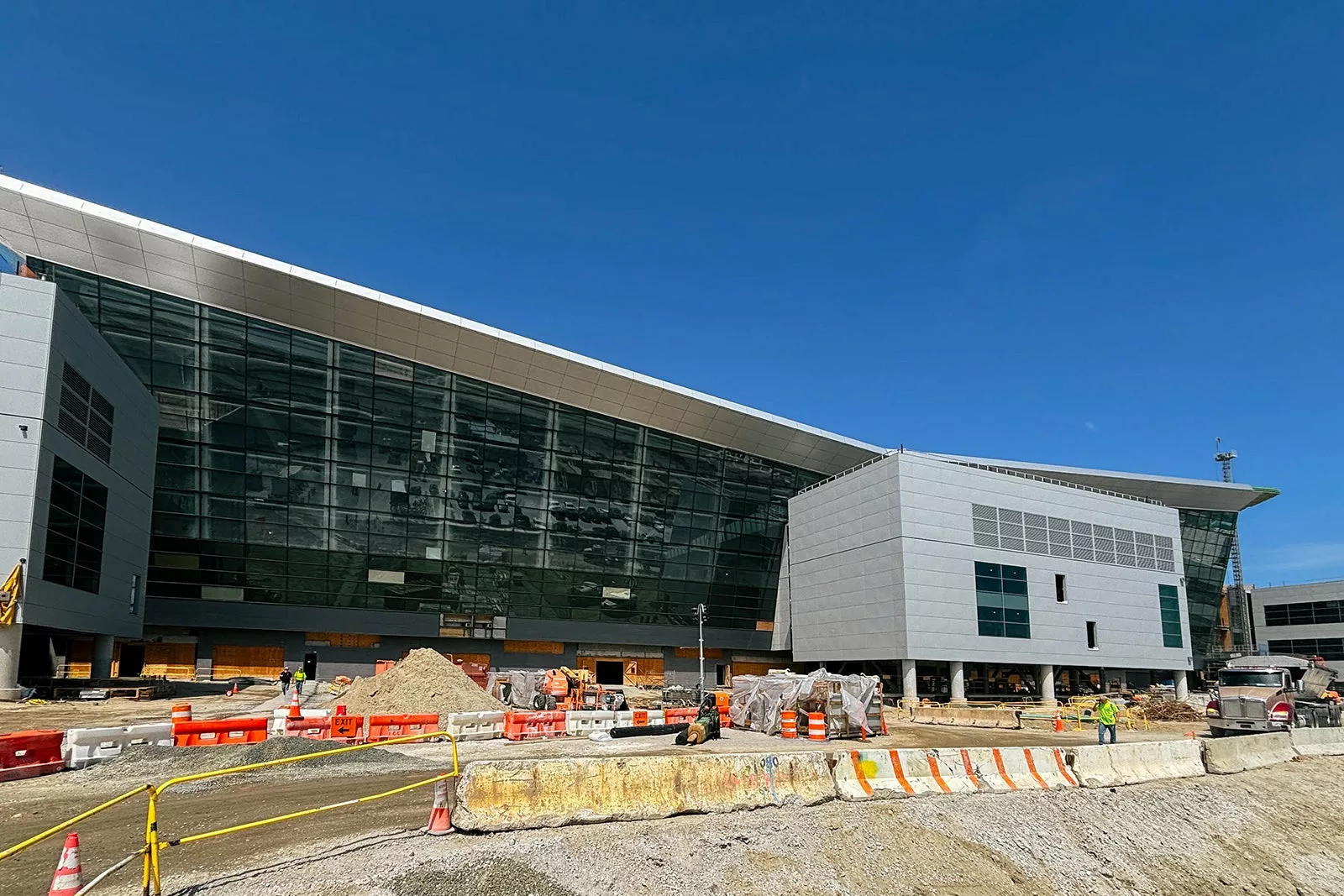 Aument recently led one of the final hardhat tours of the new Terminal One, showcasing its impressive scale. The terminal is designed to integrate the JFK AirTrain, with the ticketing hall soaring above the aircraft ramp. The architectural design, inspired by a butterfly and reminiscent of a bowtie, features a light-filled, weathertight structure that is set to undergo interior outfitting soon.